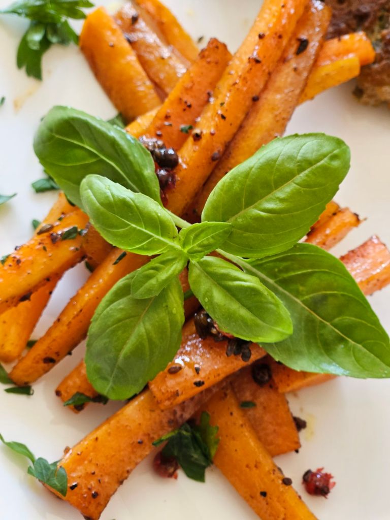 simpel und köstlich: Karotten mit Anis, rosa Pfefferbeeren und Basilikum